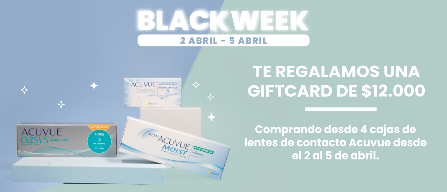 Llévate 1 Gift Card de $12.000 en Cencosud al comprar 4 cajas o más de cualquier lente de contacto marca Acuvue. Cada compra de lentes de contactos desde el 02 de abril hasta el 05 de abril 2026 o hasta agotar stock de 100 unidades. Promoción válida únicamente para la categoría mencionada y no es acumulable con otras promociones ni compras en suscripción. Válido solo en www.ryk.cl