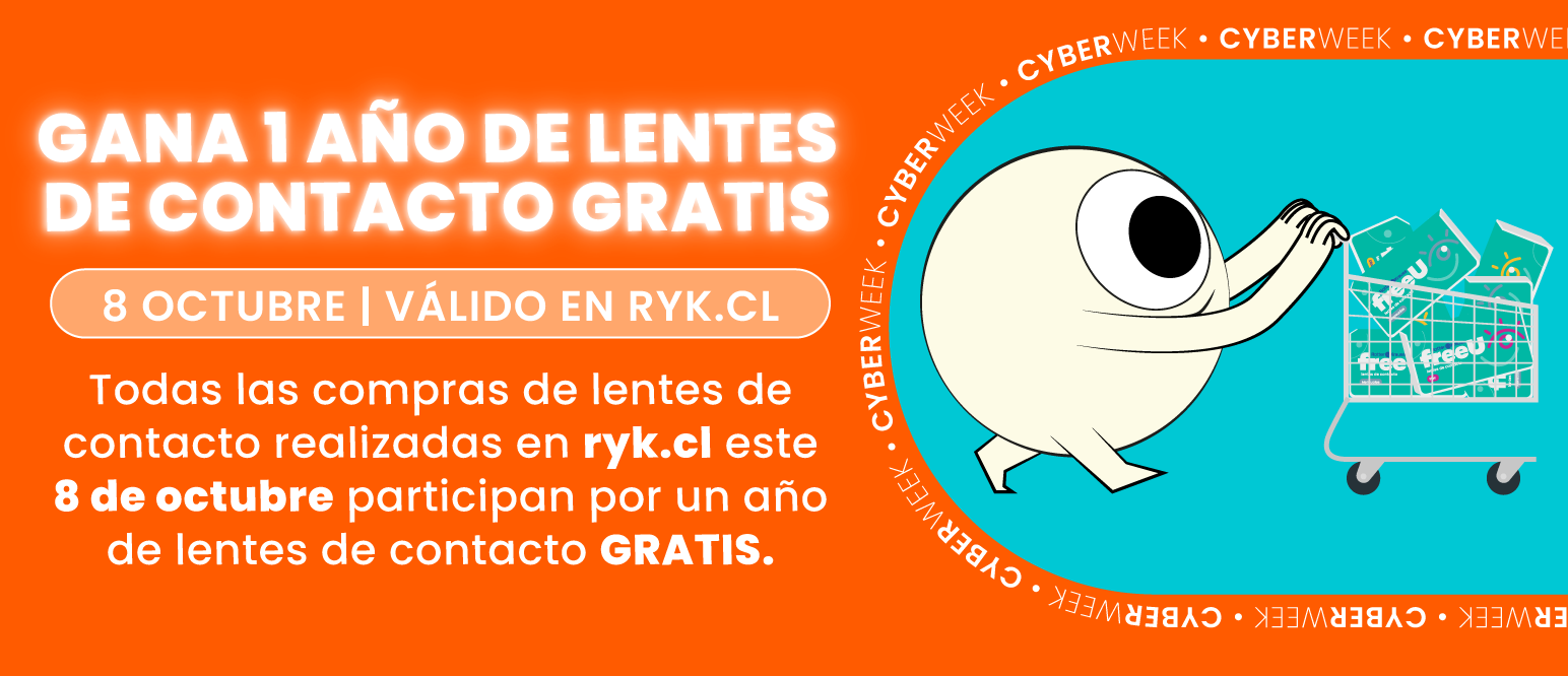 Promoción válida desde el 29 de septiembre el 08 de octubre de 2025 solo en tienda online (ryk.cl). Obtén hasta un 55% en lentes de contacto. No acumulable con otras promociones, descuentos y/o convenios, ni productos de suscripción. Promoción válida hasta agotar stock de productos en promoción (20.000 unidades).
